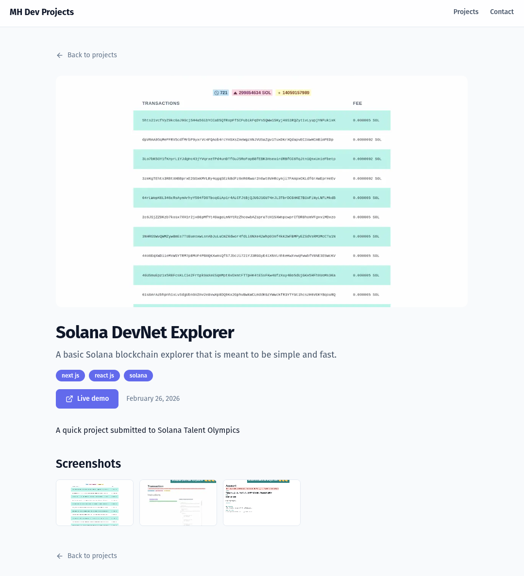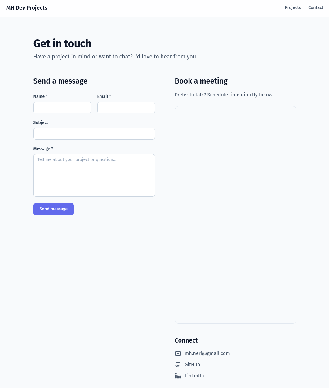 A full-stack developer portfolio built with Next.js 14 (App Router) and TypeScript, styled with Tailwind CSS, and backed by PostgreSQL via Prisma 7. Features a public-facing project showcase with rich-text descriptions, screenshot lightbox, tech stack badges, and full-text search. A password-protected admin panel enables creating, editing, and drag-and-drop reordering of projects, with image uploads handled through Railway Storage (S3-compatible). Contact form submissions are stored in the database and forwarded via Resend, with an optional Calendly booking widget. Authentication uses iron-session with bcrypt-hashed credentials. Deployed on Railway with zero-downtime migrations on every push.