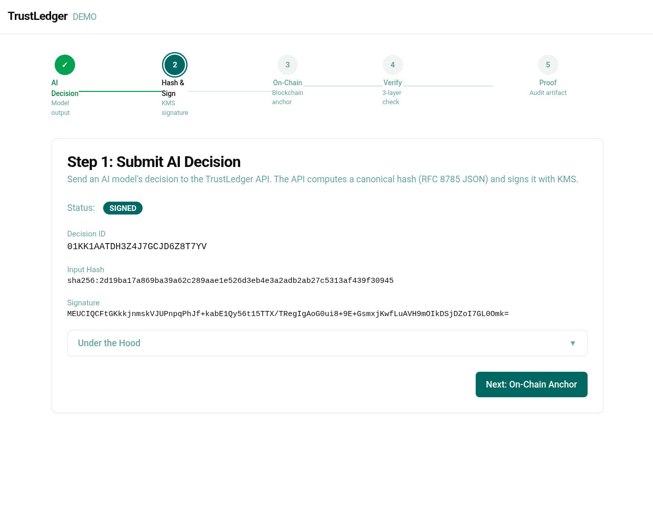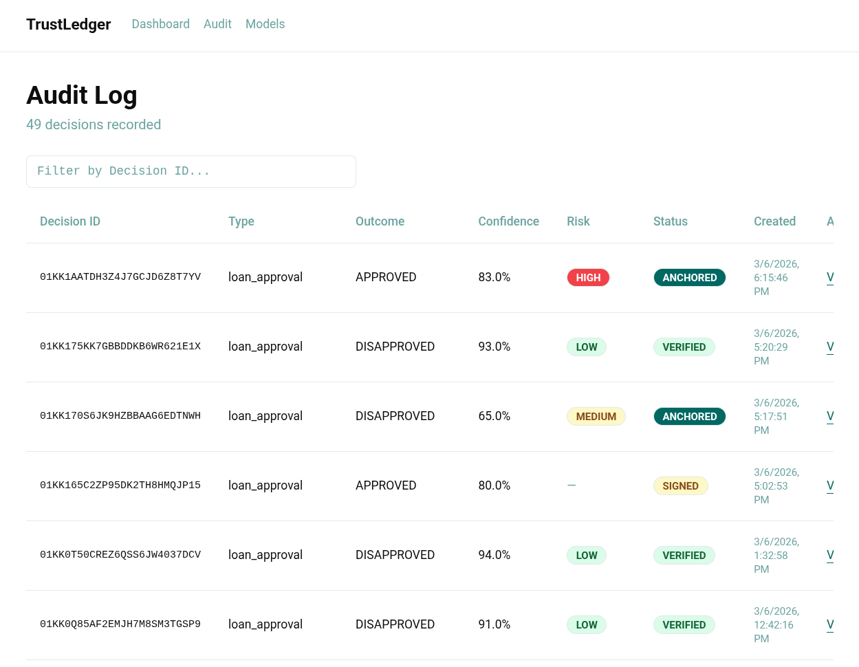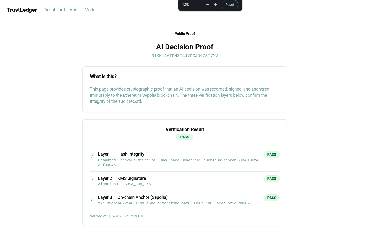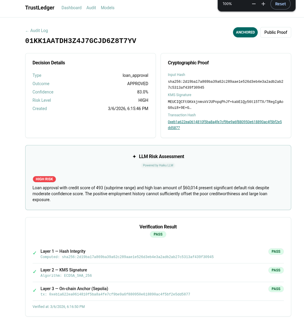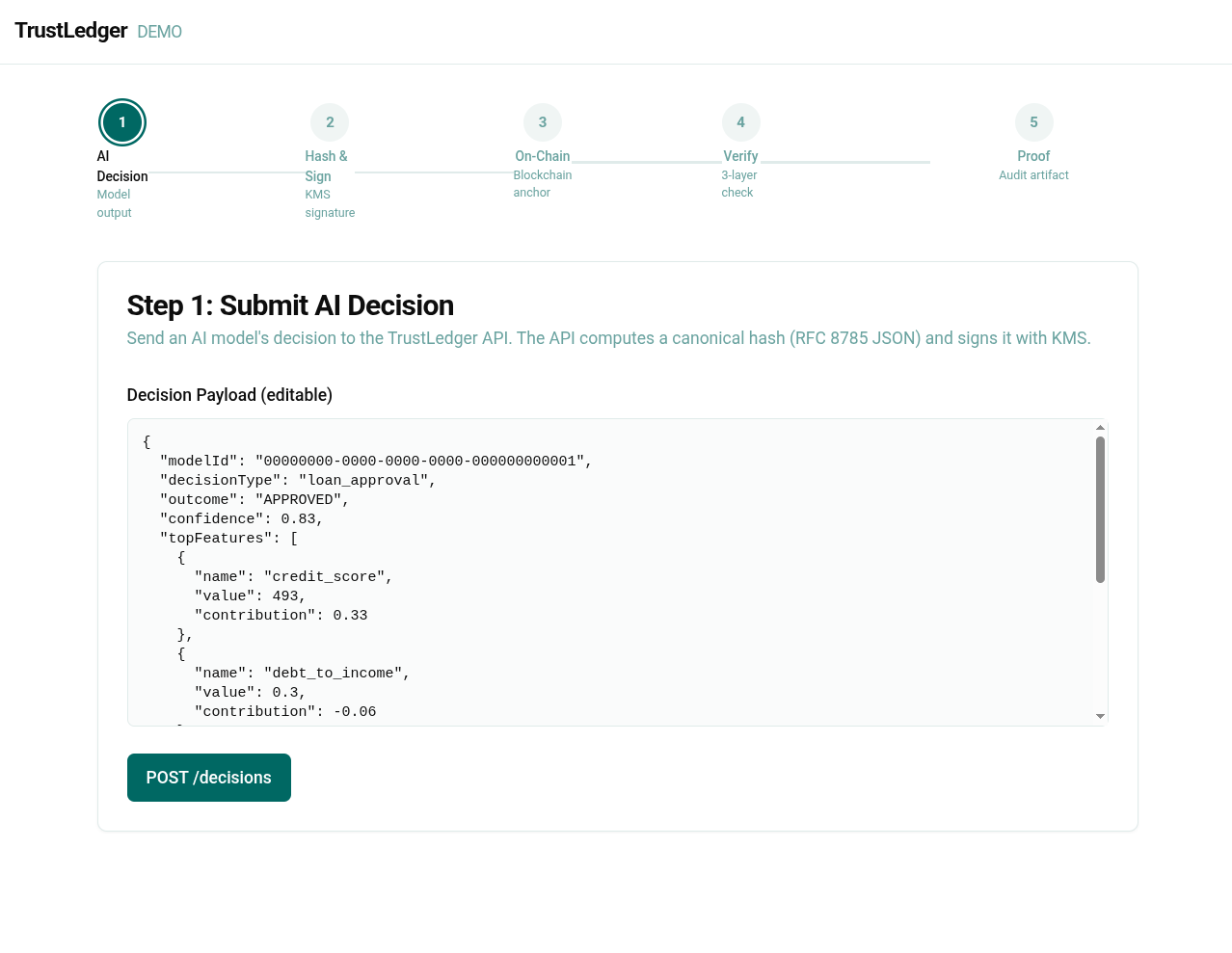 Making every AI decision in regulated industries independently verifiable and tamper-proof.
